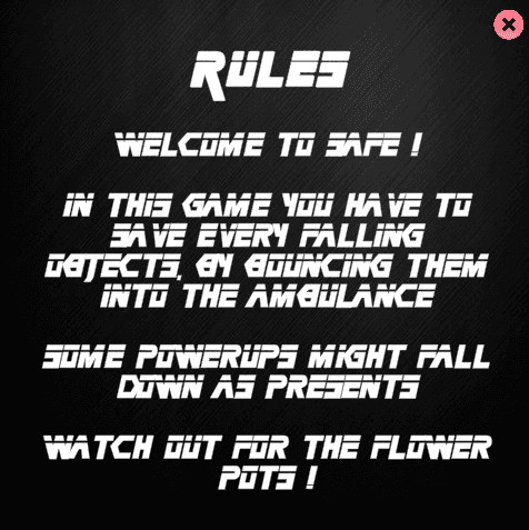 The assignment was to create a game where objects fall into a box and the player scores points by catching them. I took this concept and turned it into an arcade-style game where players control a firefighter moving laterally in front of a building, using a small trampoline to bounce falling objects into an ambulance to earn points. Players must avoid harmful items, such as flower pots, which cost a life if hit, while collecting occasional bonus items to help maximize their score.